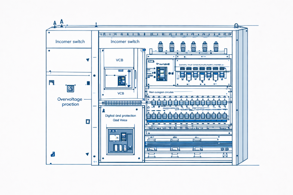 Prefabrykacja rozdzielnic elektrycznych, szaf automatyki i sterowania. Możemy zapewnić złożenie, zamontowanie na obiekcie, wykonanie instalacji powiązanych zgodnie z ustaleniami i z zakresem projektu.